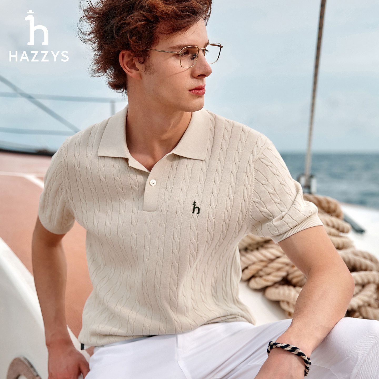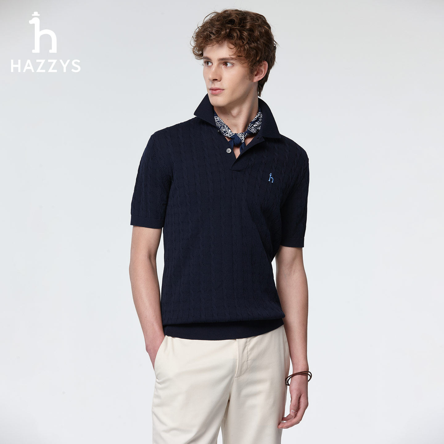 Hazzys哈吉斯男士 POLO翻领针织衫 夏季 通勤老钱风休闲上衣 绞花短袖