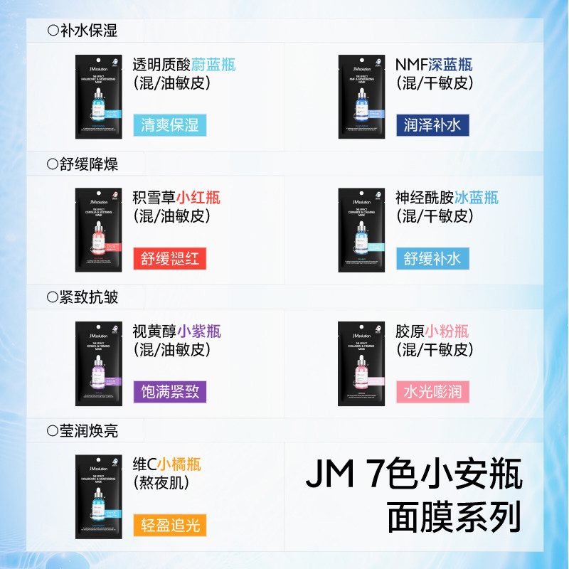 上市 韩国jm面膜安瓶补水保湿 舒缓紧致抗皱清爽水润10片 新款由
