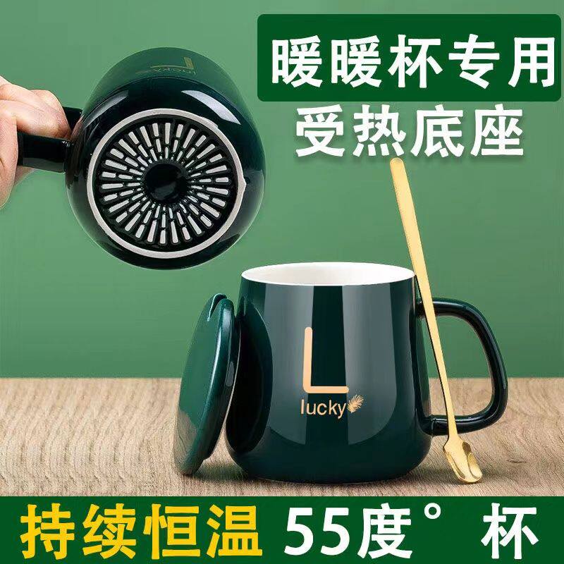 高端个人专用水杯暖暖杯55度专用杯子马克杯带盖恒温杯垫加热牛奶由