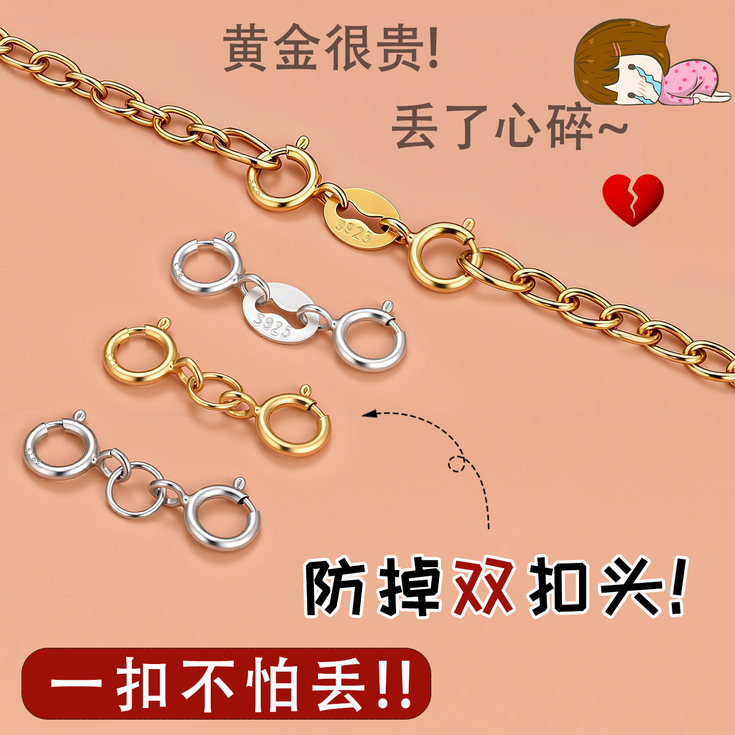 ⭐小红书推荐⭐金项链防掉扣手链M扣神防丢器纯银防掉脱双头弹簧首饰接头diy配件,所属扣分类,由淘宝网挑选推荐!小红书抖音网红同款!哪里有卖金项链防掉扣手链M扣神防丢器纯银防掉脱双头弹簧首饰接头diy配件和多少钱质量怎么样✅。