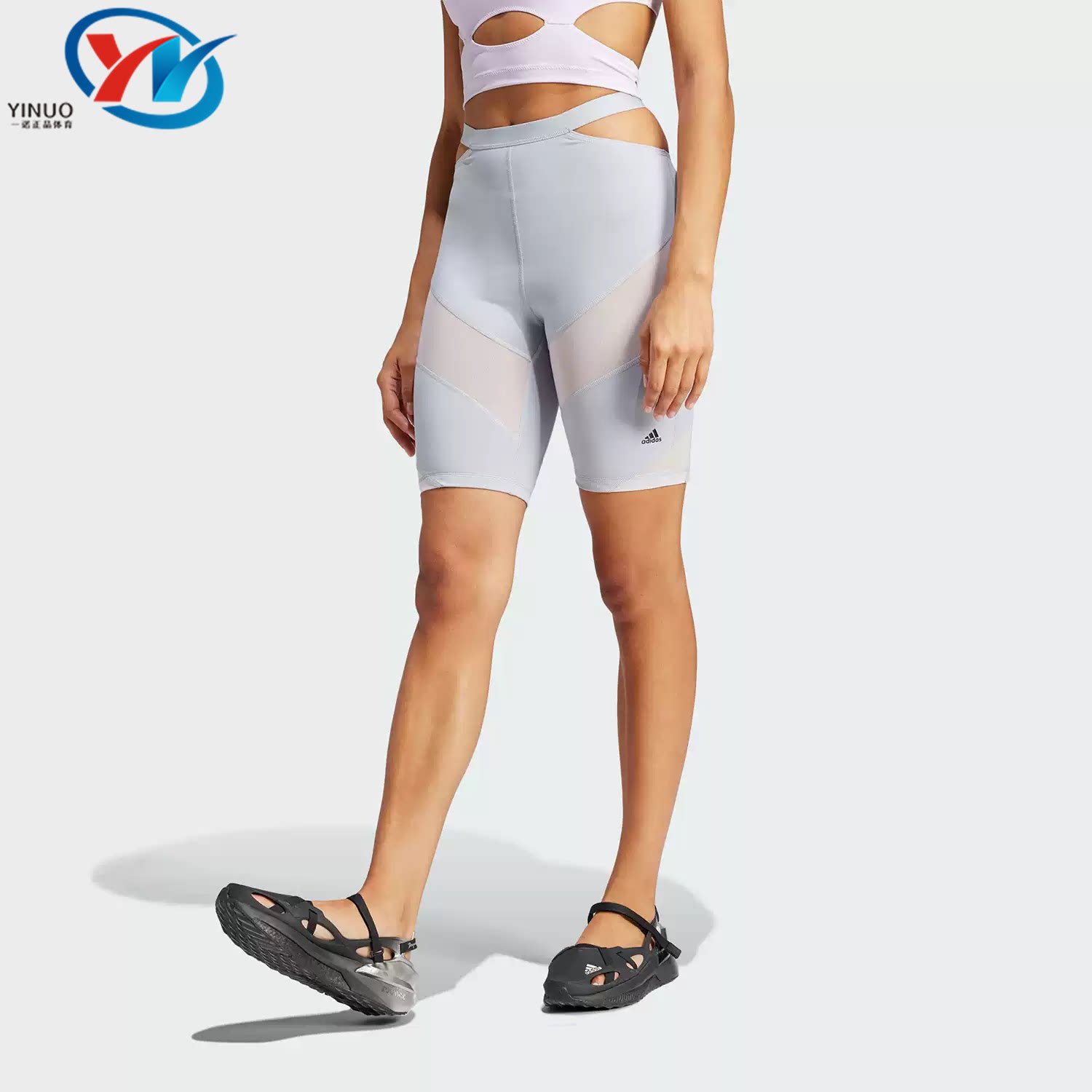 Adidas 浅银 女子镂空紧身运动透气休闲骑行短裤 IU3066 阿迪达斯