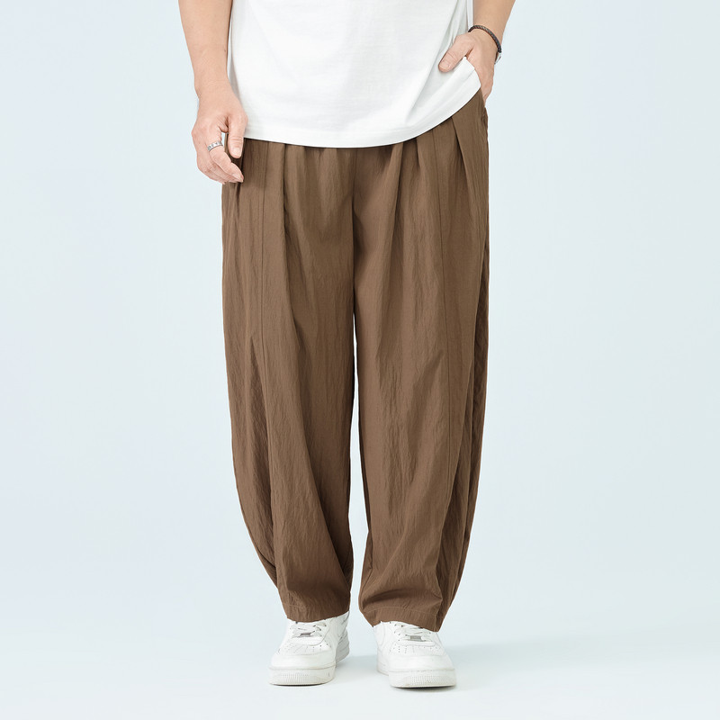 宽松加肥加大收褶弯刀裤 半墨大码 胖子潮 新款 男春季 男装 阔腿灯笼裤由