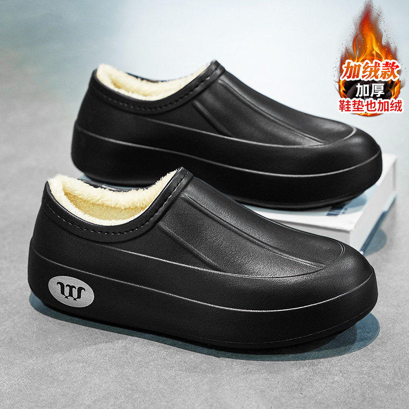 男冬季 加绒保暖防水防滑室内居家外穿包头办公室一 业棉拖鞋 合成鞋由