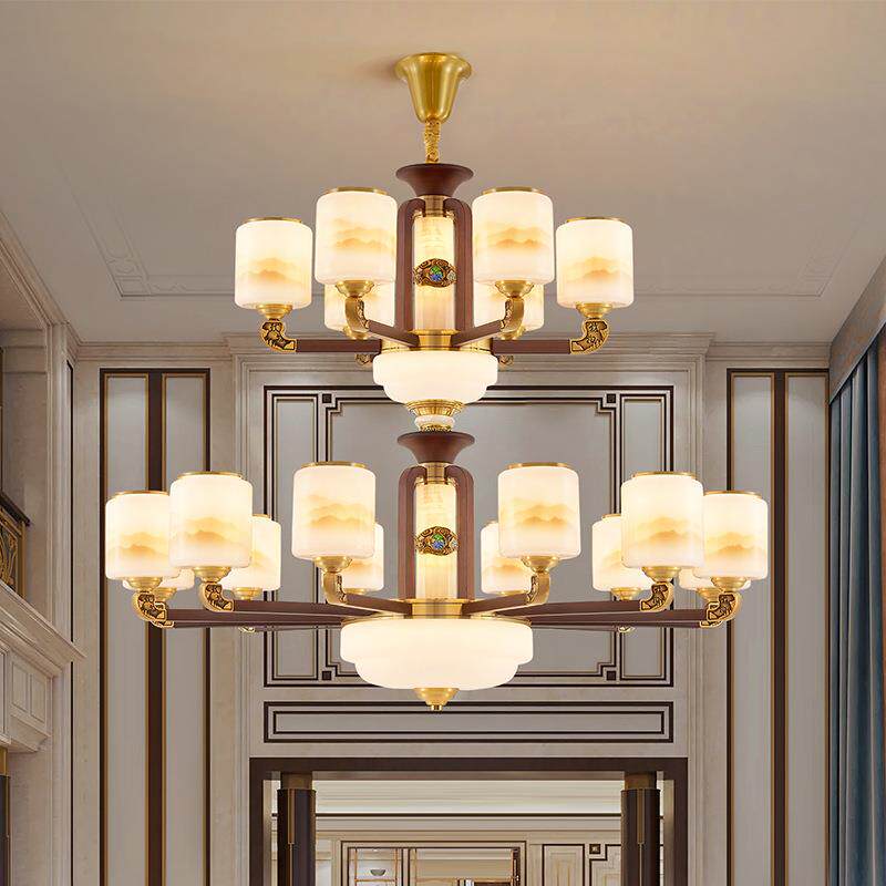 新中式 别墅挑空大吊灯 吊灯全铜实木客厅灯复古中国风餐厅卧室复式
