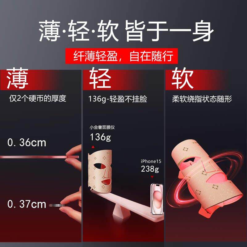 veme光子嫩肤仪美容面罩家用脸部面膜仪led红蓝光大排灯淡斑祛痘由