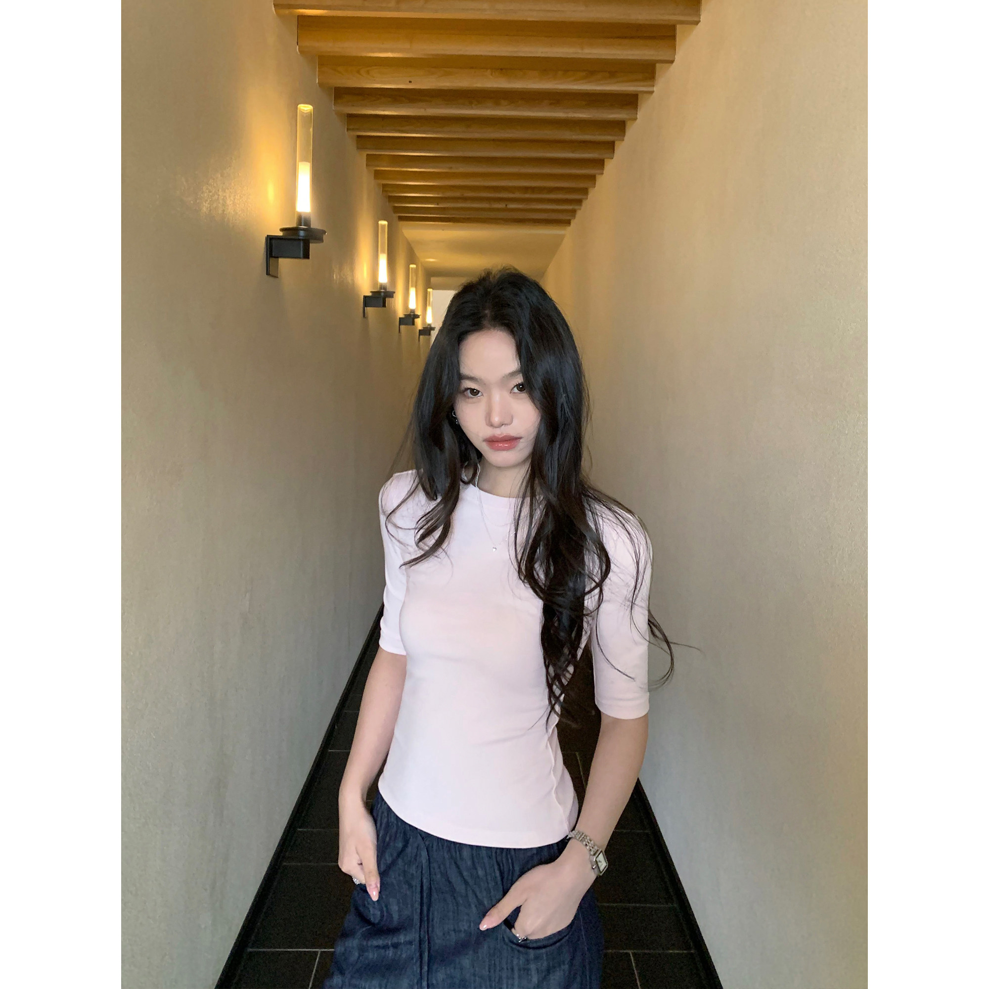 8折 新品 pusumede 短上衣 正肩圆领五分袖 T恤女中袖 基础百搭由