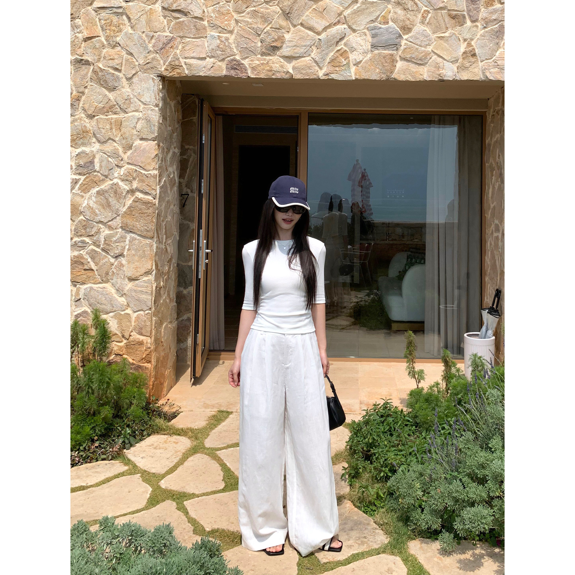 上衣女纯色打底衫 内搭小白T 薄款 短袖 纯棉 网易严选白色t恤男夏季