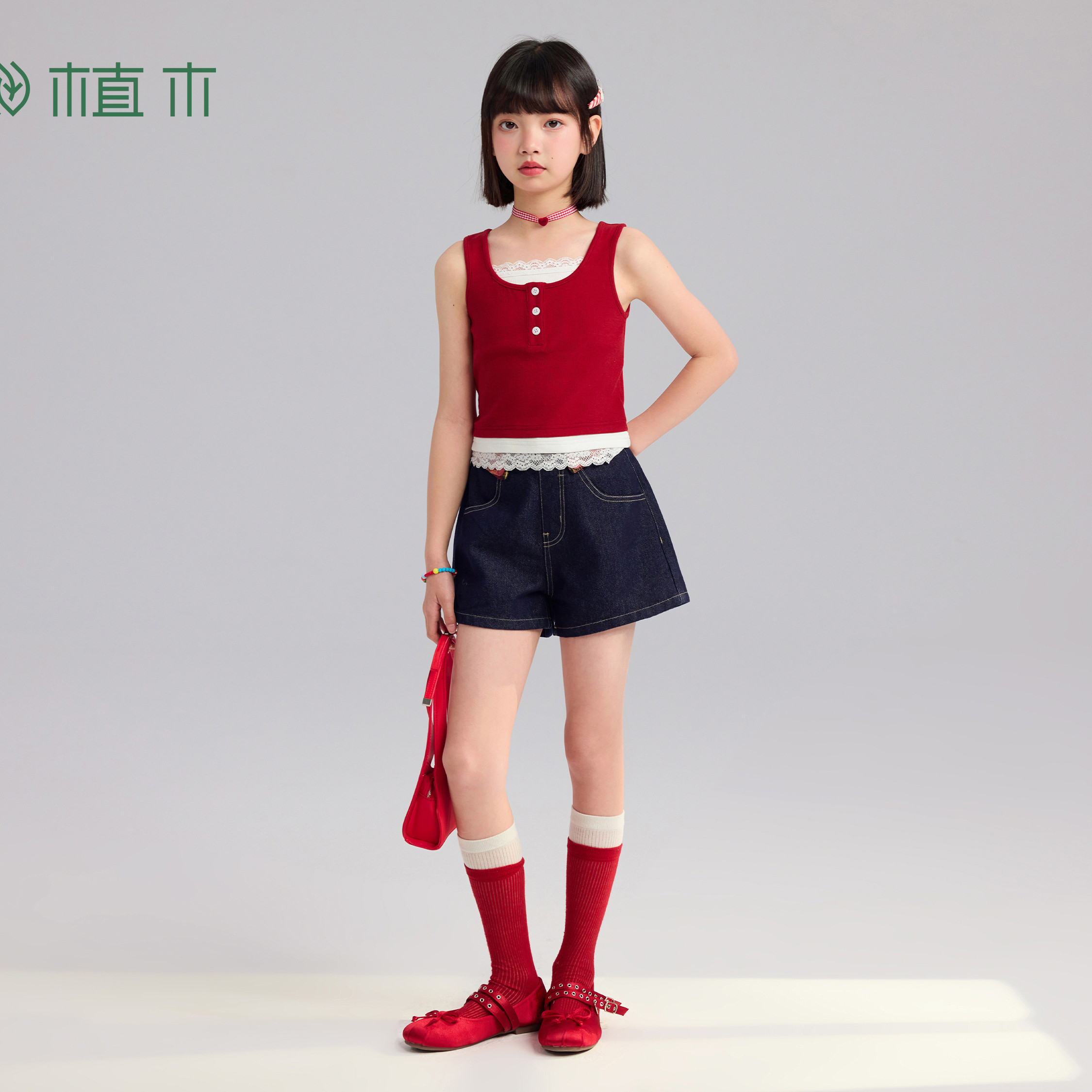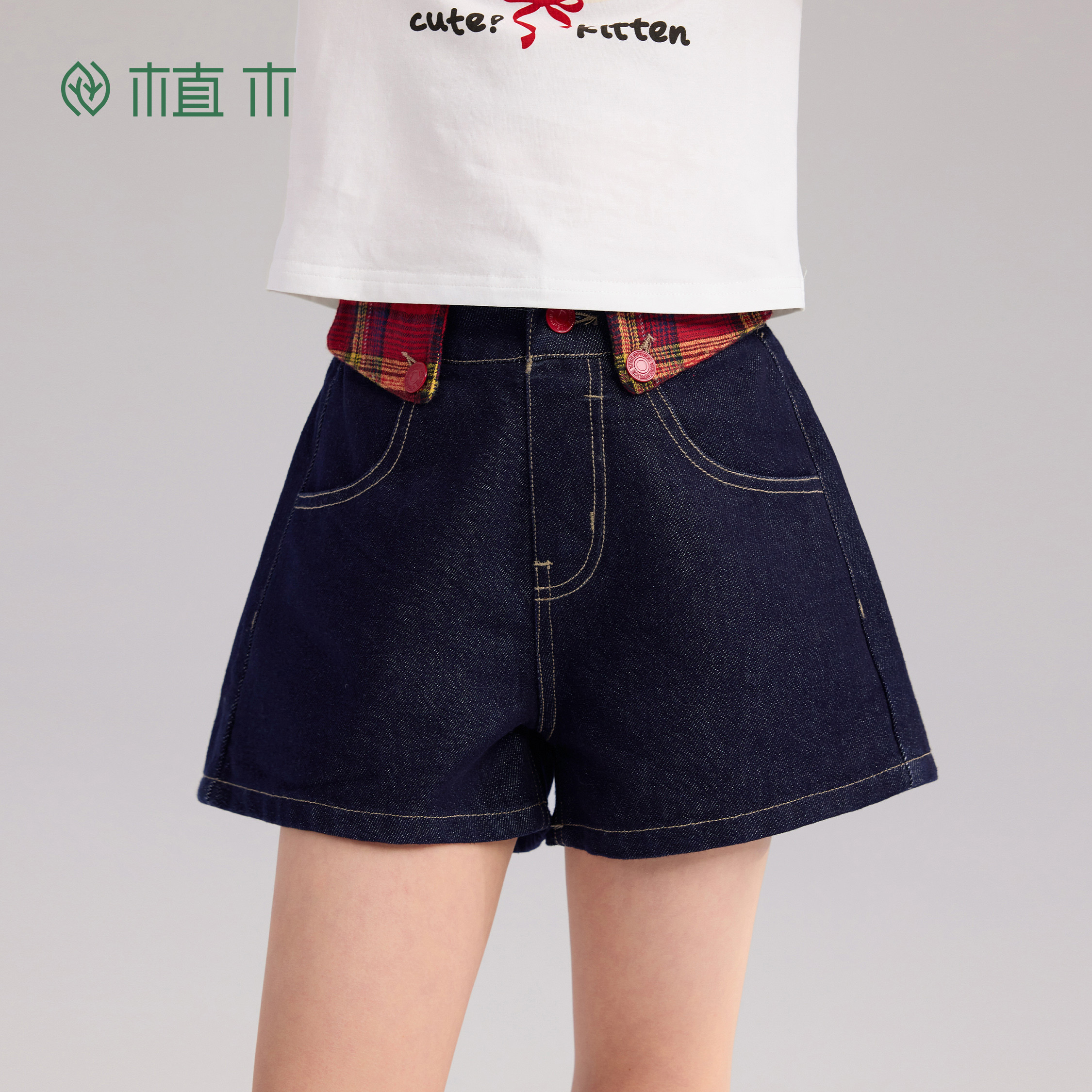 格子 水洗牛仔短裤 时光静好 青少年2026夏季 新款 女童短裤 植木