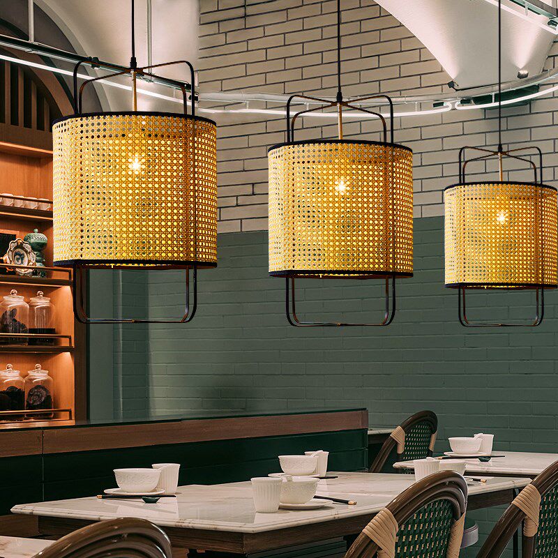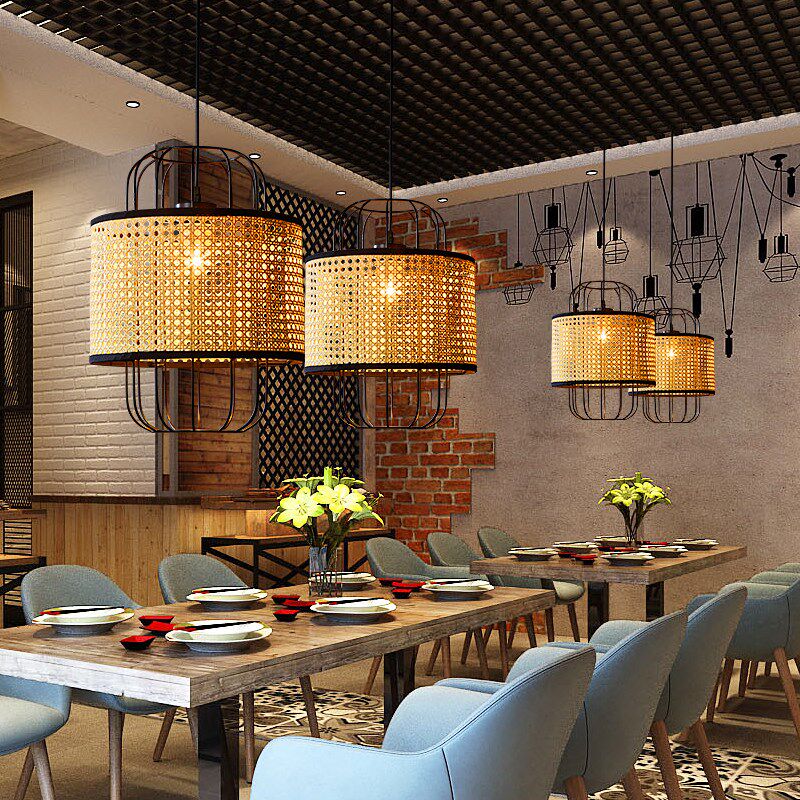 中式 灯 宴会厅红吊灯餐饮火锅店灯笼简约藤艺餐厅民宿酒店竹编日式