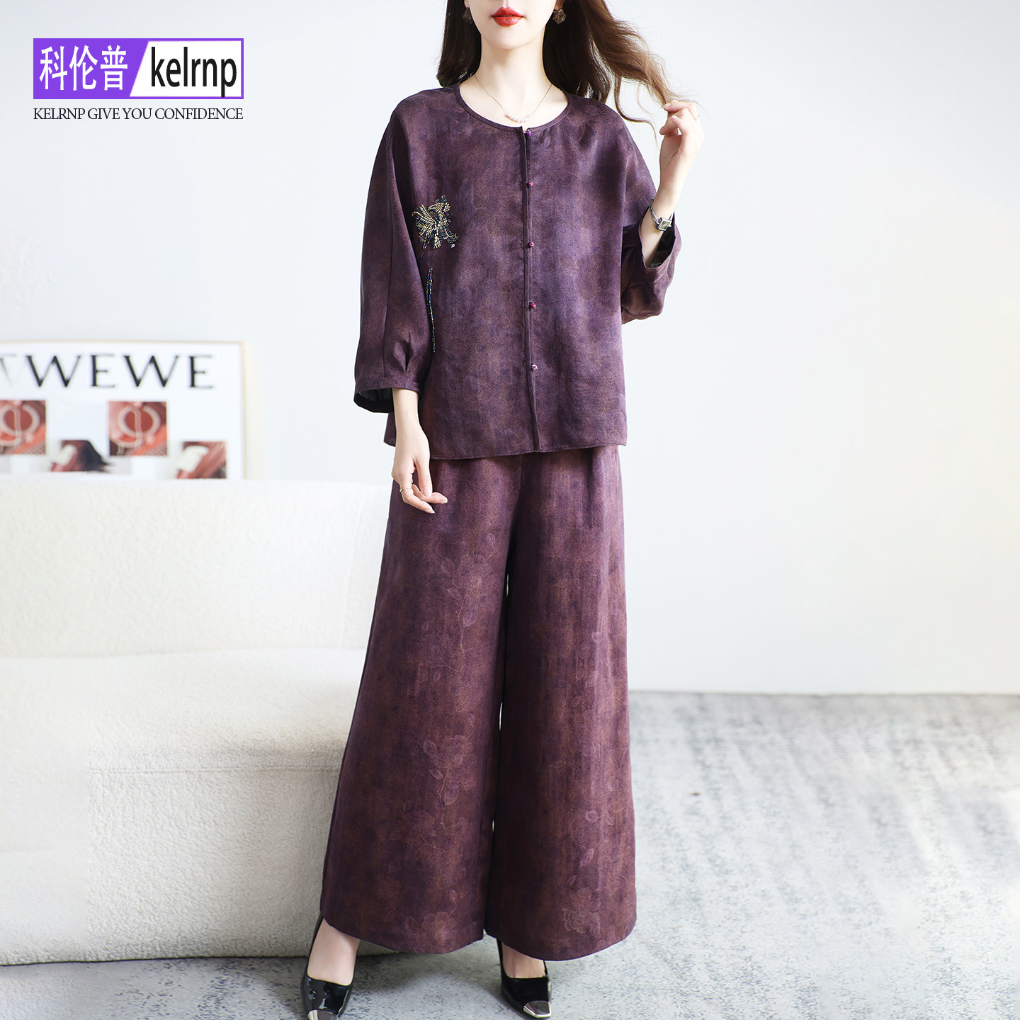 新款 时尚 套装 中年女春季 休闲两件套洋气上衣春秋 40岁妈妈春装
