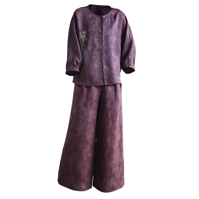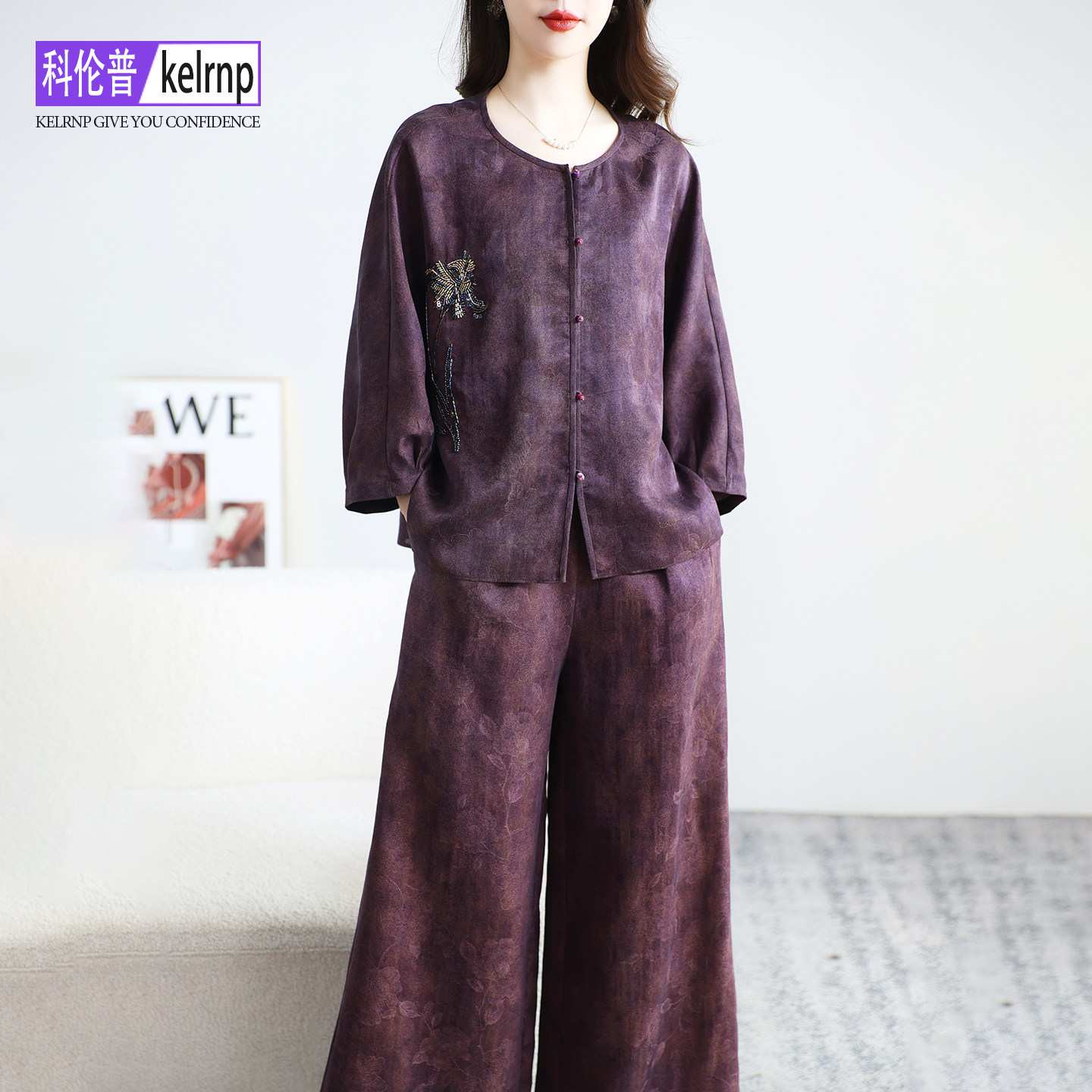 为您提供商品民族香云纱真丝上衣两件套装 子2026夏新短袖 桑蚕丝T恤女松紧腰裤的详细介绍,