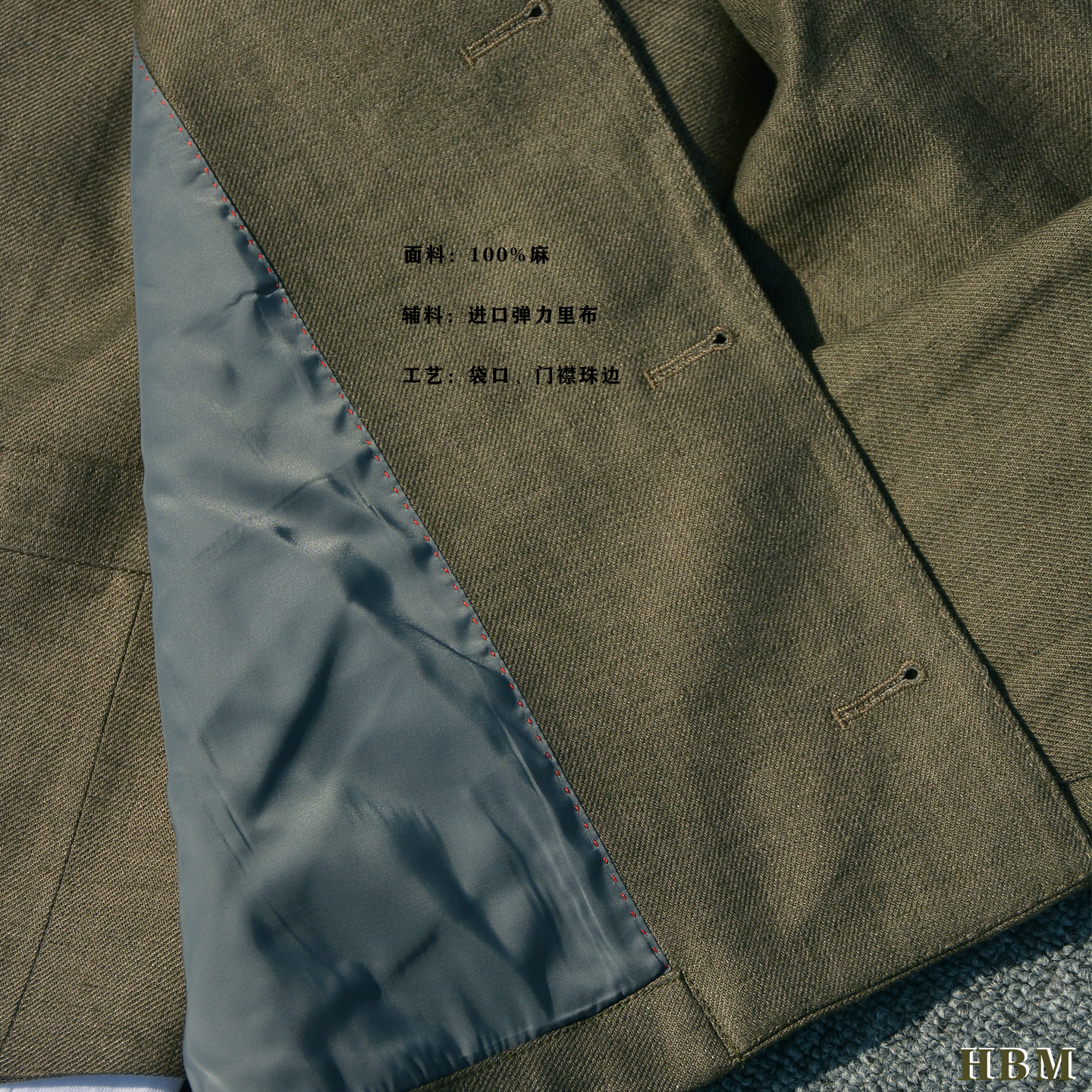 为您提供商品款 短夹克男女 橄榄绿100麻半夹里商务休闲翻领外套纽扣衬衫 HBM新款的详细介绍,