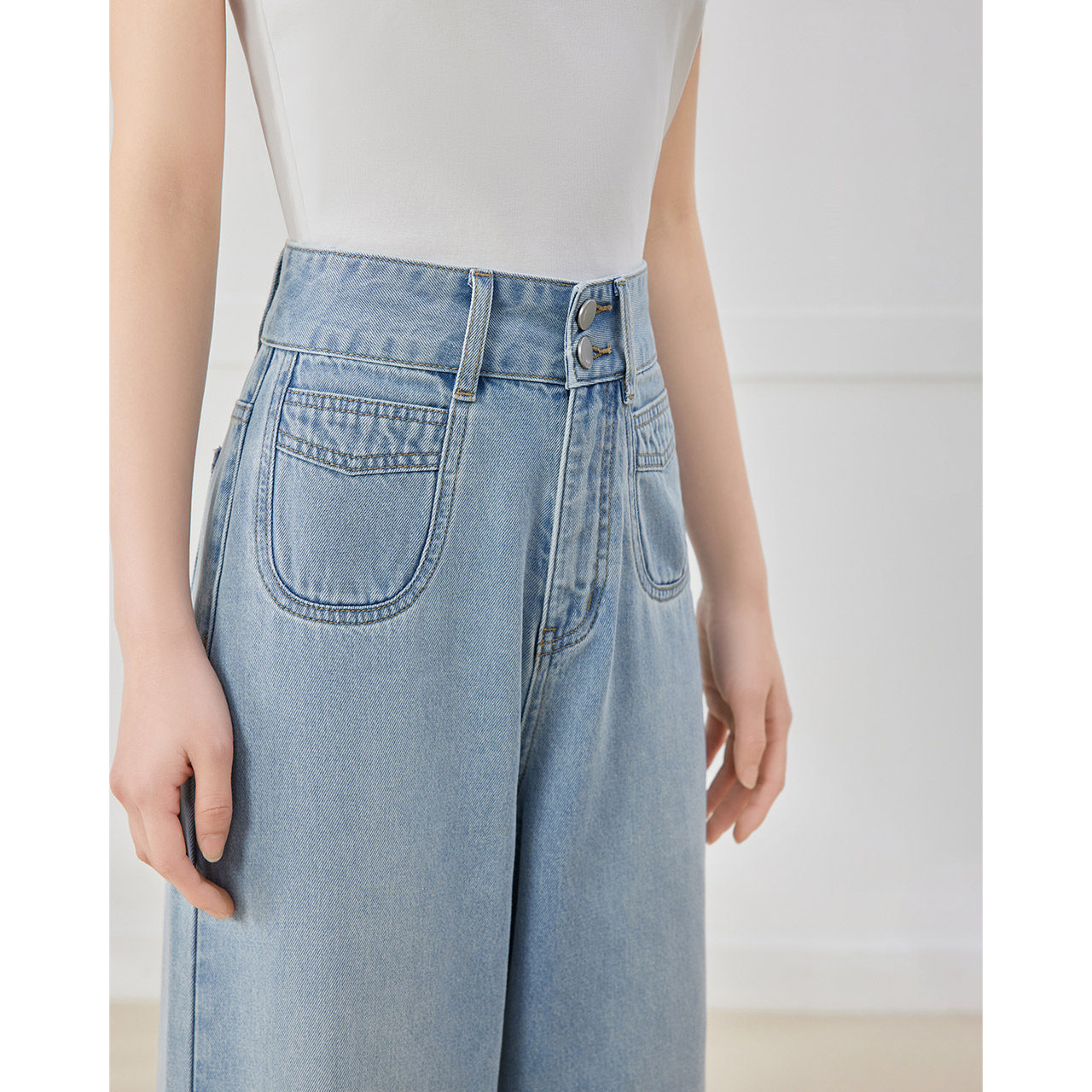 裤 IEF 小个子 韩版 简约百搭牛仔阔腿裤 新款 爱依服 子2026夏季