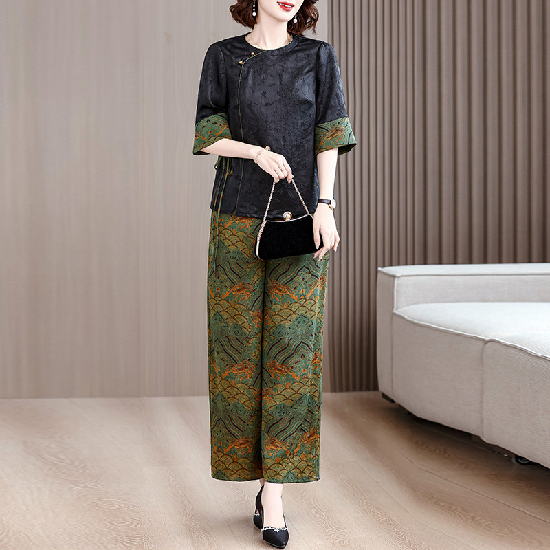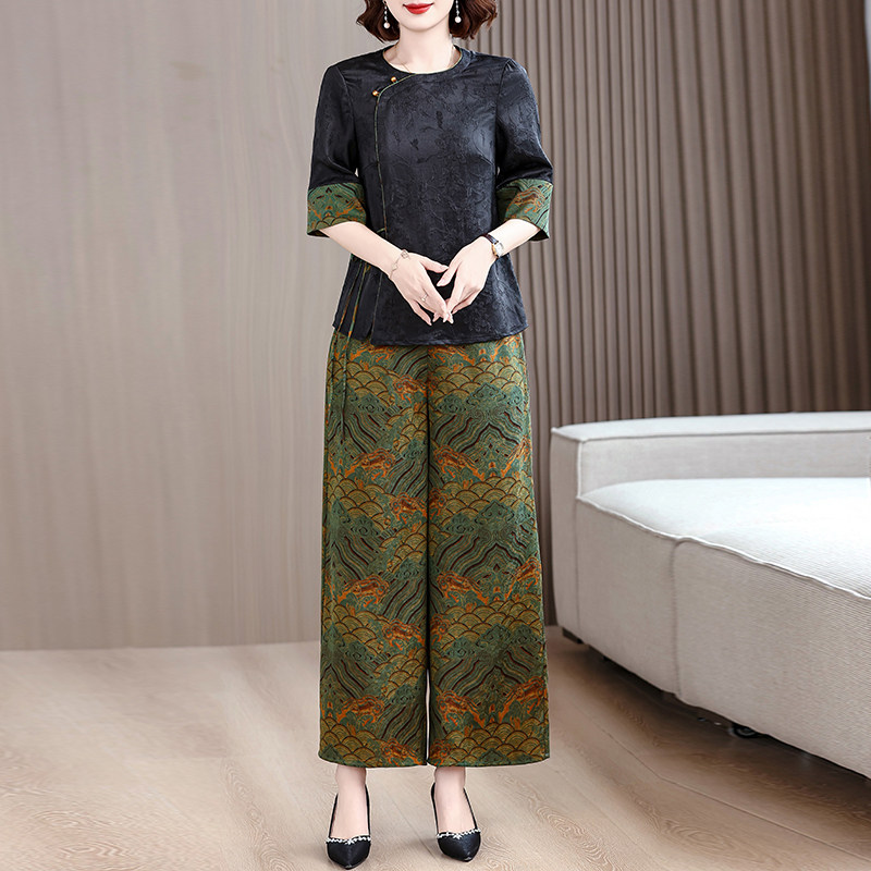 为您提供商品妈妈夏装 真丝香云纱时尚 套装 女2026新款 两件套 高端提花上衣阔腿裤的详细介绍,