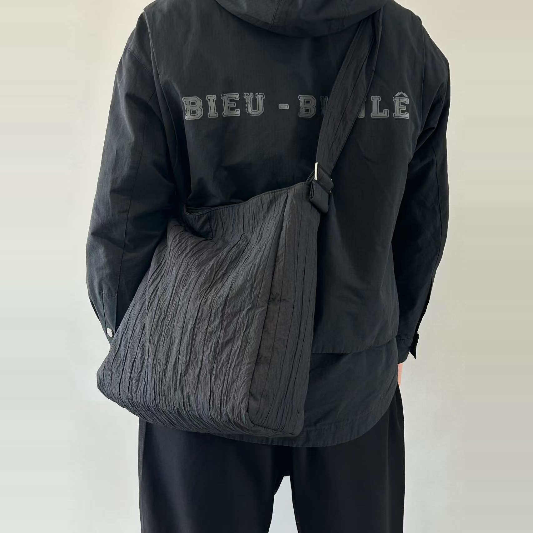 小众设计加厚尼龙布褶皱防水托特包轻便简约电脑包登山包斜挎包由
