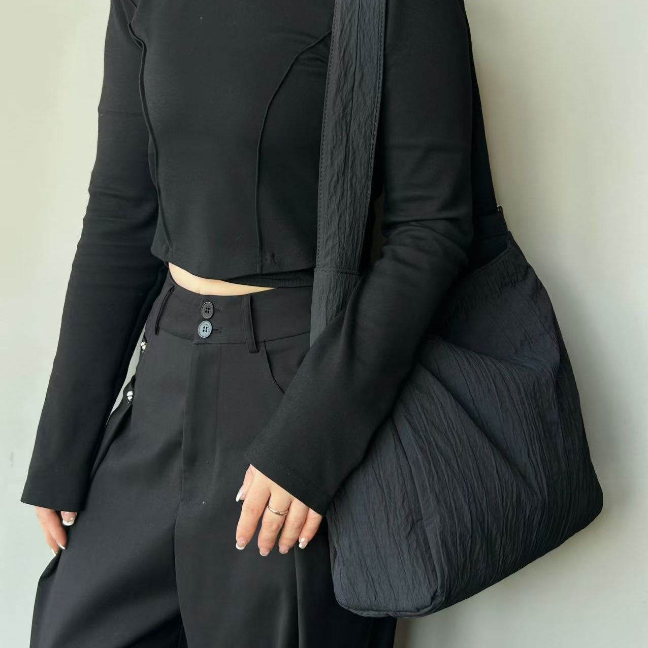 小众设计加厚尼龙布褶皱防水托特包轻便简约电脑包登山包斜挎包