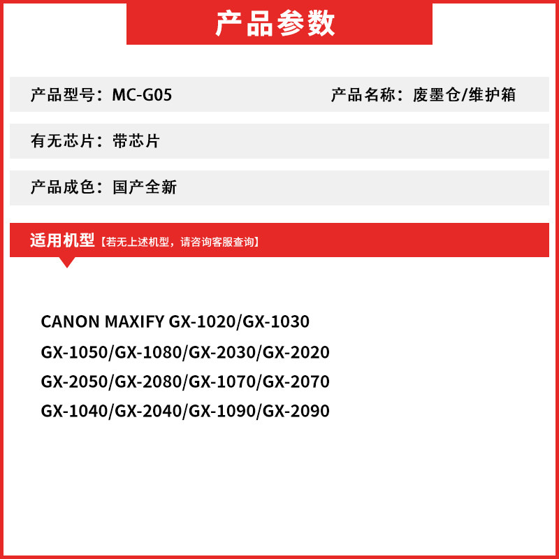 为您提供商品GX2080 适用佳能MC G05维护箱GX1030 GX2030 1050保养墨盒 GX1080的详细介绍,