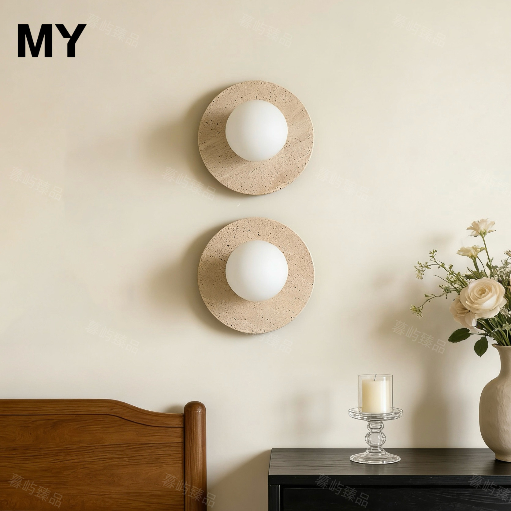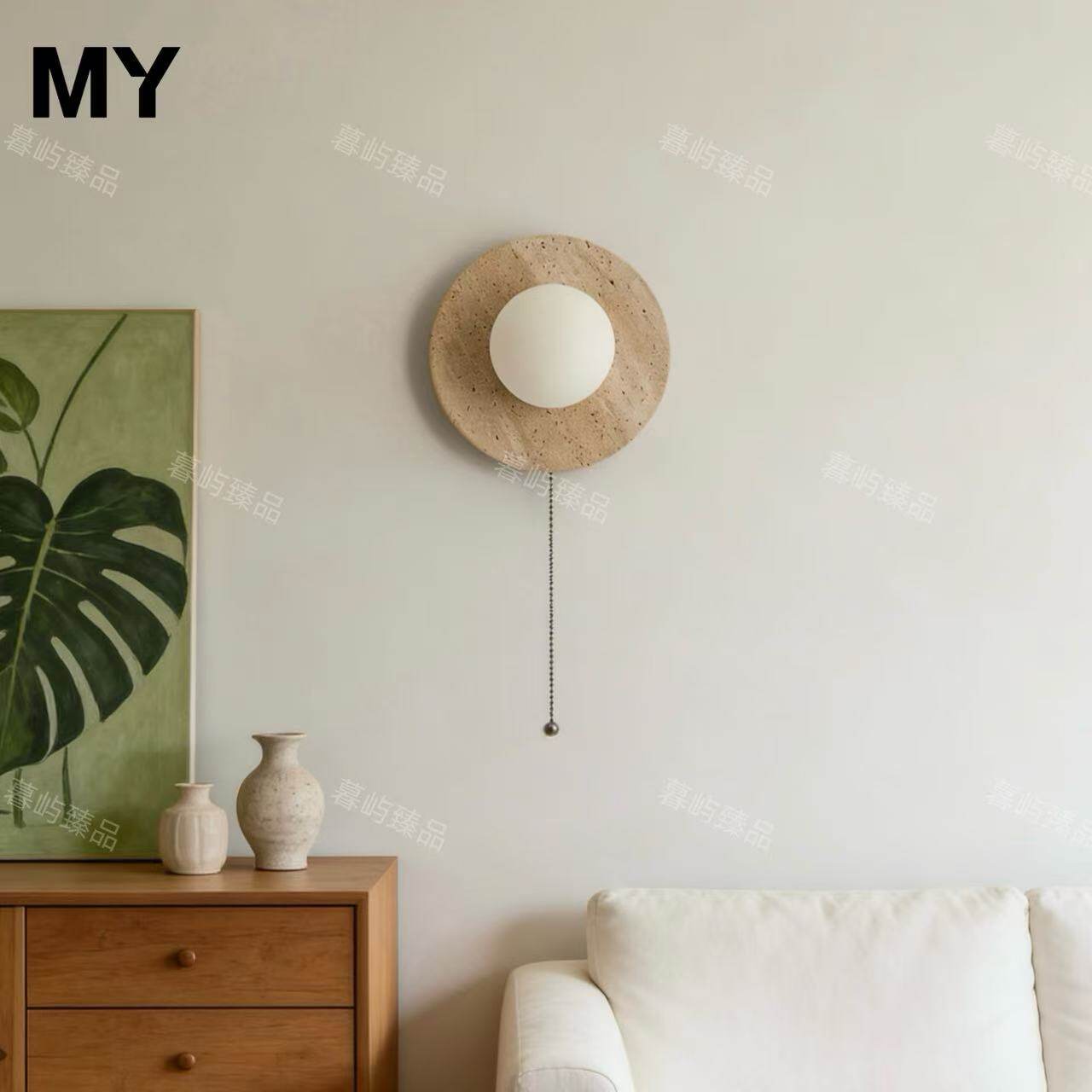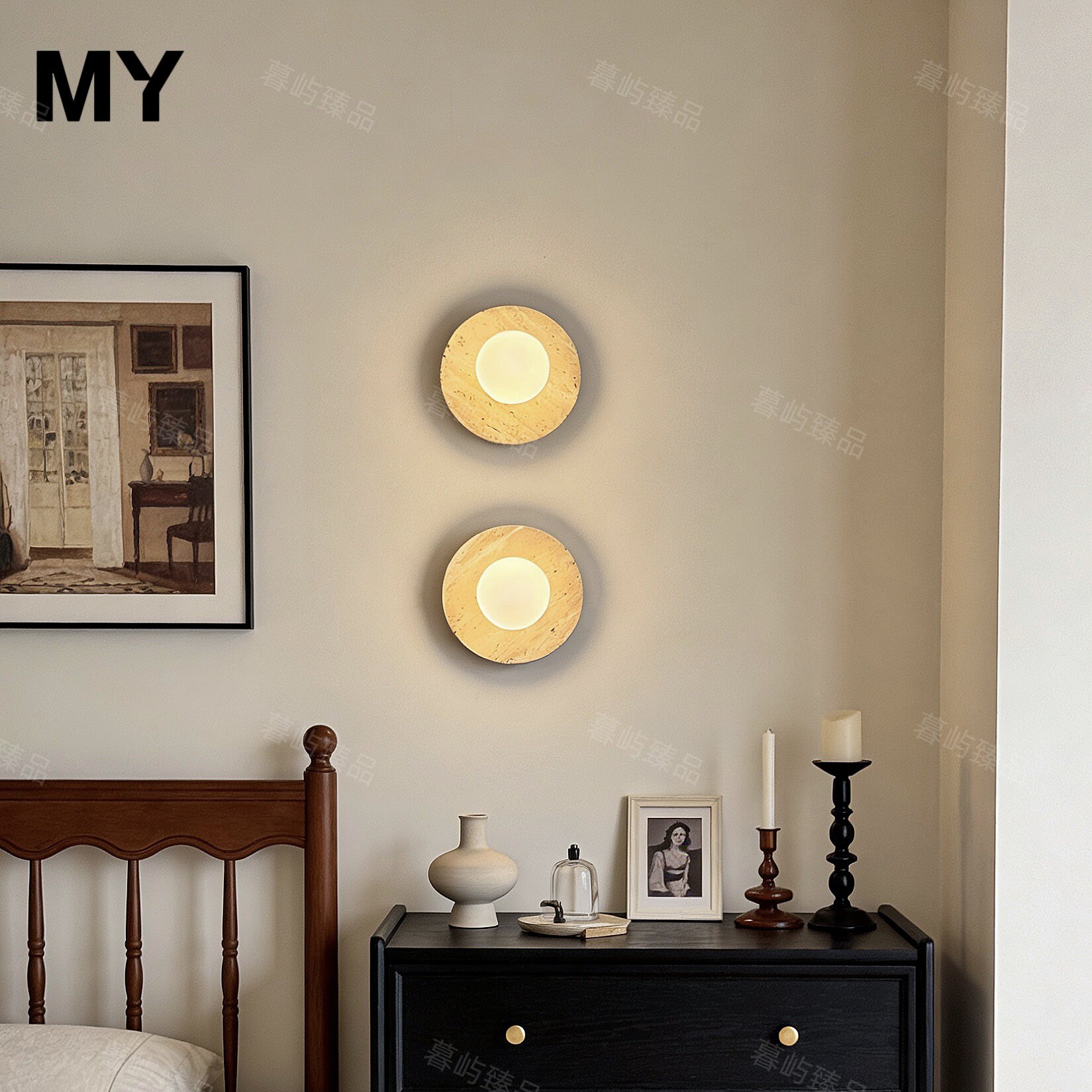 饰灯 中古风洞石壁灯卧室床头灯客厅复古走廊过道楼梯民宿黄洞石装由