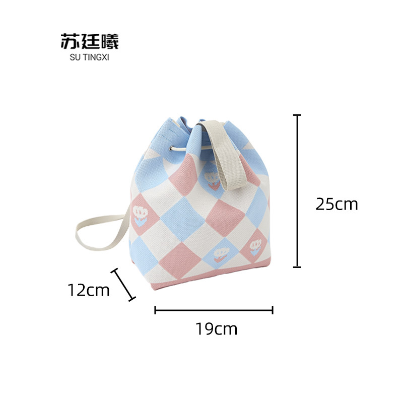 为您提供商品夏大容量通勤百搭可手提斜挎小包 苏廷曦针织抽绳水桶包2024女新款的详细介绍,
