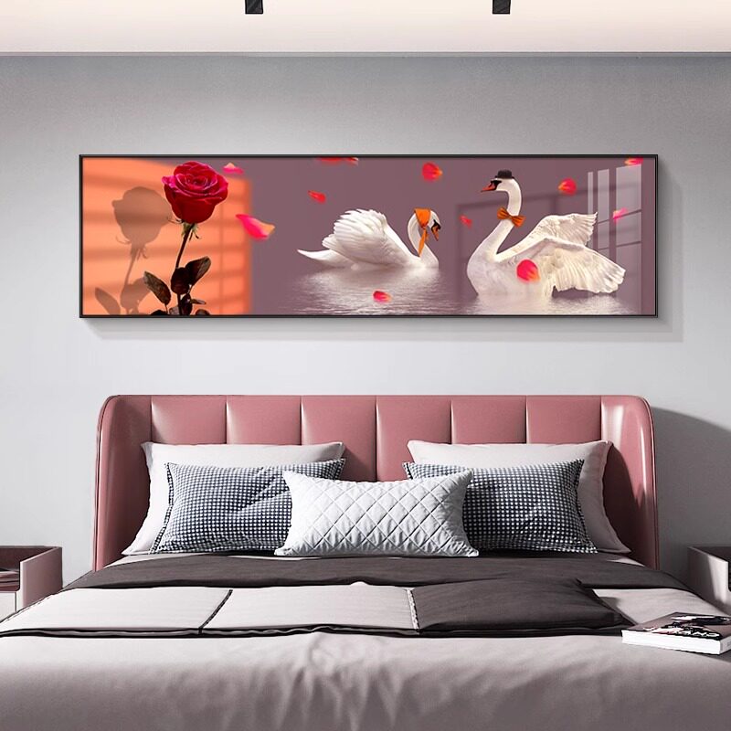 幸福天鹅卧室床头装 好寓意沙发挂画 饰画轻奢高级感背景墙壁画横版