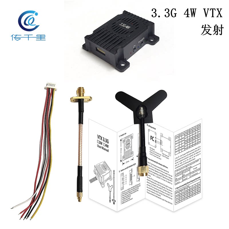 3.3G4w发射接收机穿越机远距离大功率无人机fpv无线传输图传 厂价由