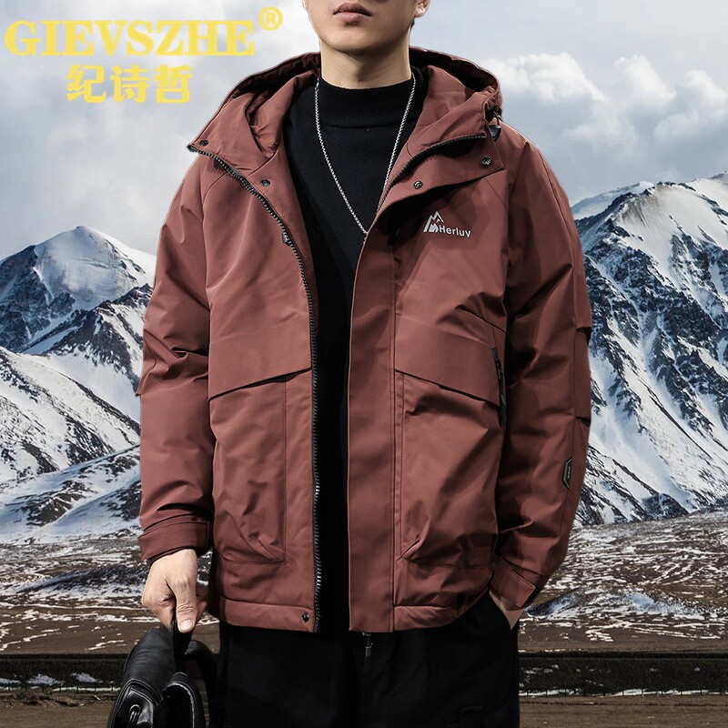 为您提供商品外套 纪诗哲2025冬山系户外防风冲锋衣羽绒服男90鸭绒宽松连帽工装的详细介绍,