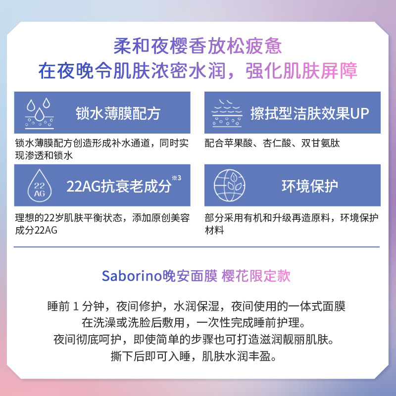 为您提供商品BCL日本官方进口正品 樱花夜樱面膜 Saborino早晚安第二代补水保湿的详细介绍,