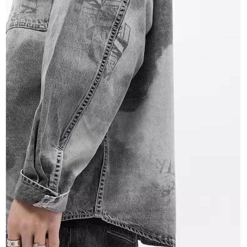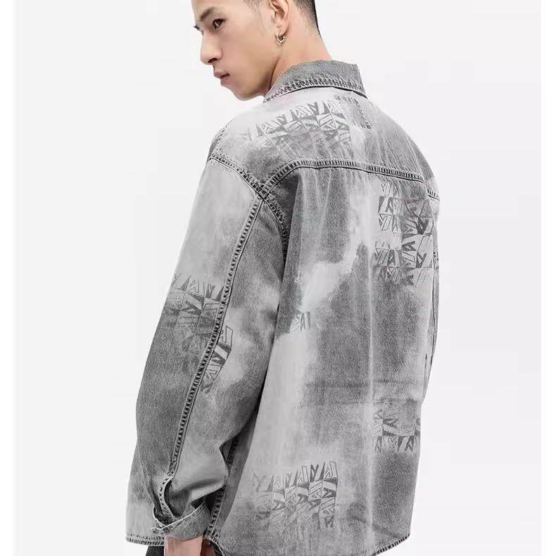 灰牛牛仔衬衫 江南水墨印花夹克型外套厚衬衣 JEANS男士 中国风ABLE由