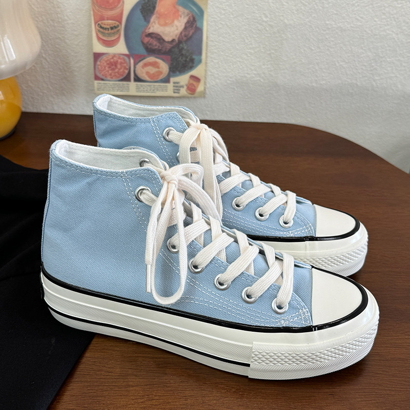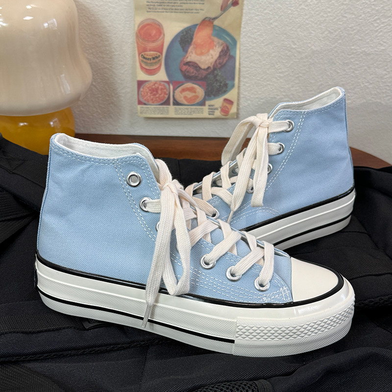 浅兰厚底增高时尚 百搭学院系带港风休闲款 复古帆布鞋 青春潮流韩版