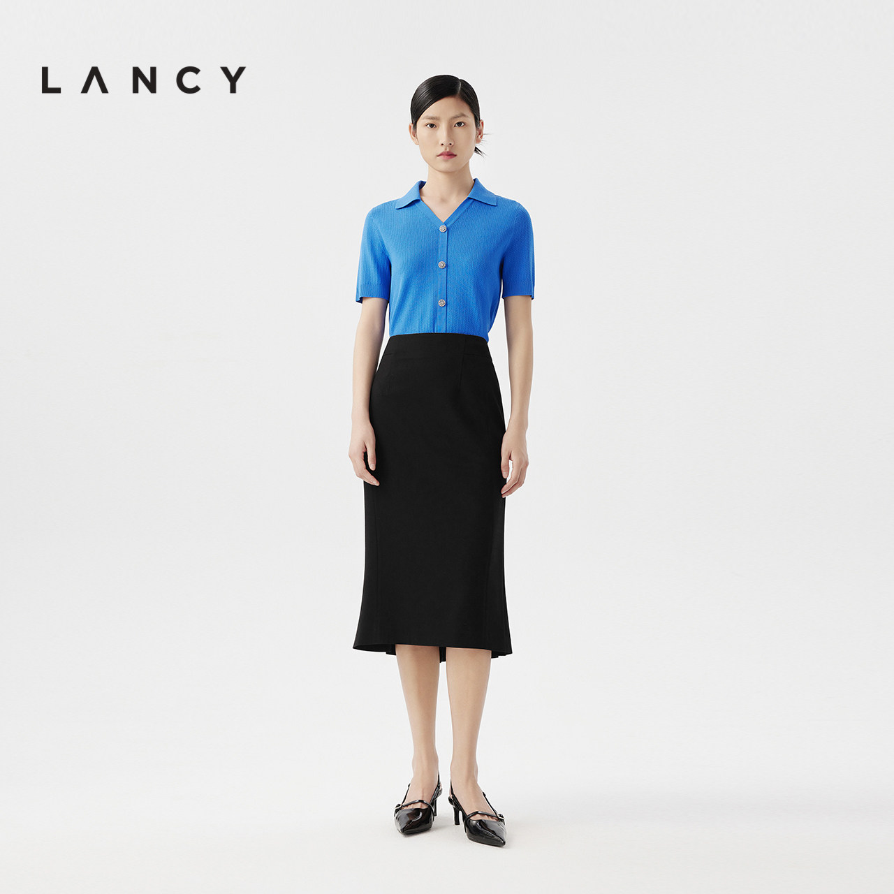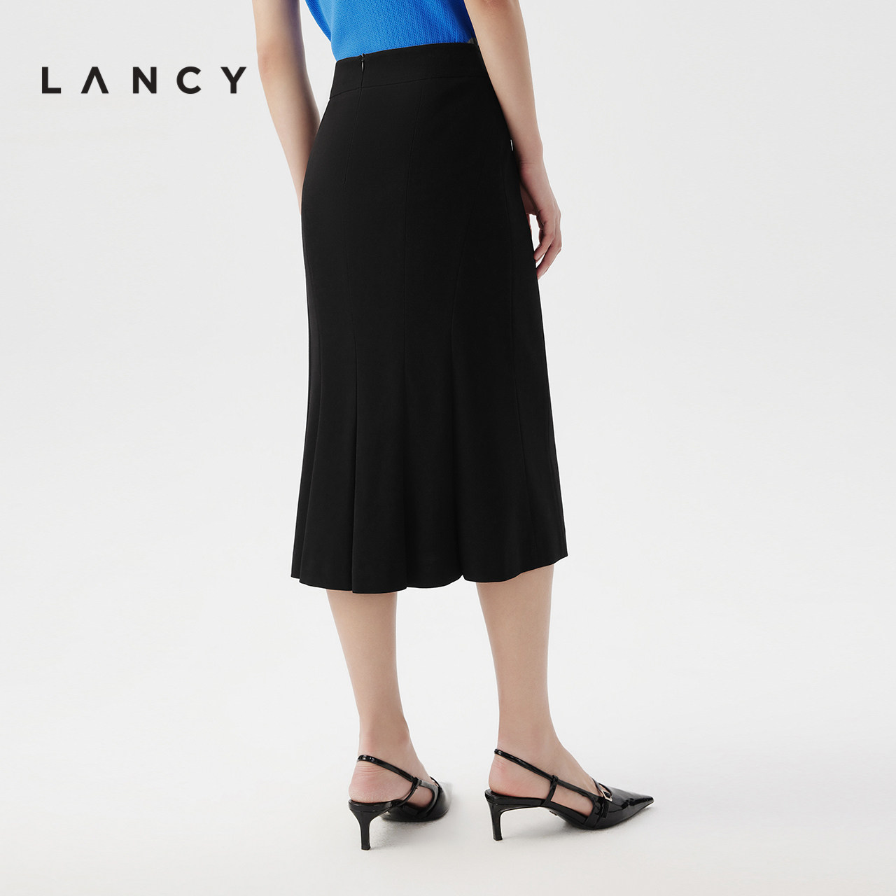 为您提供商品新款 气质醋酸黑色鱼尾半身裙女高腰显瘦高级感 朗姿2024夏季 LANCY的详细介绍,