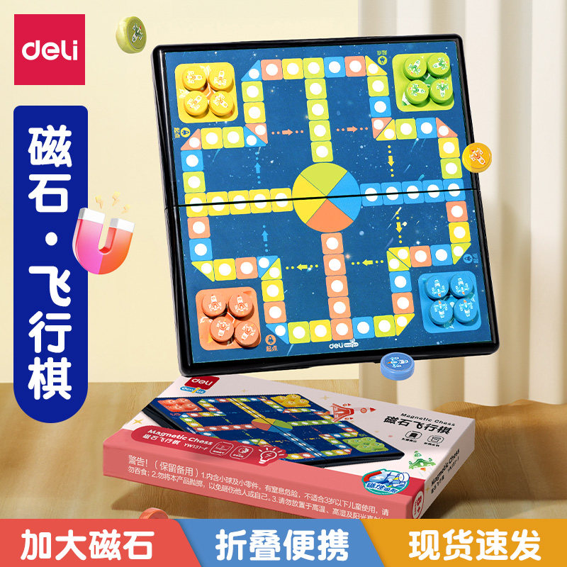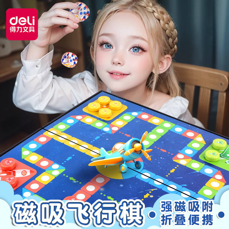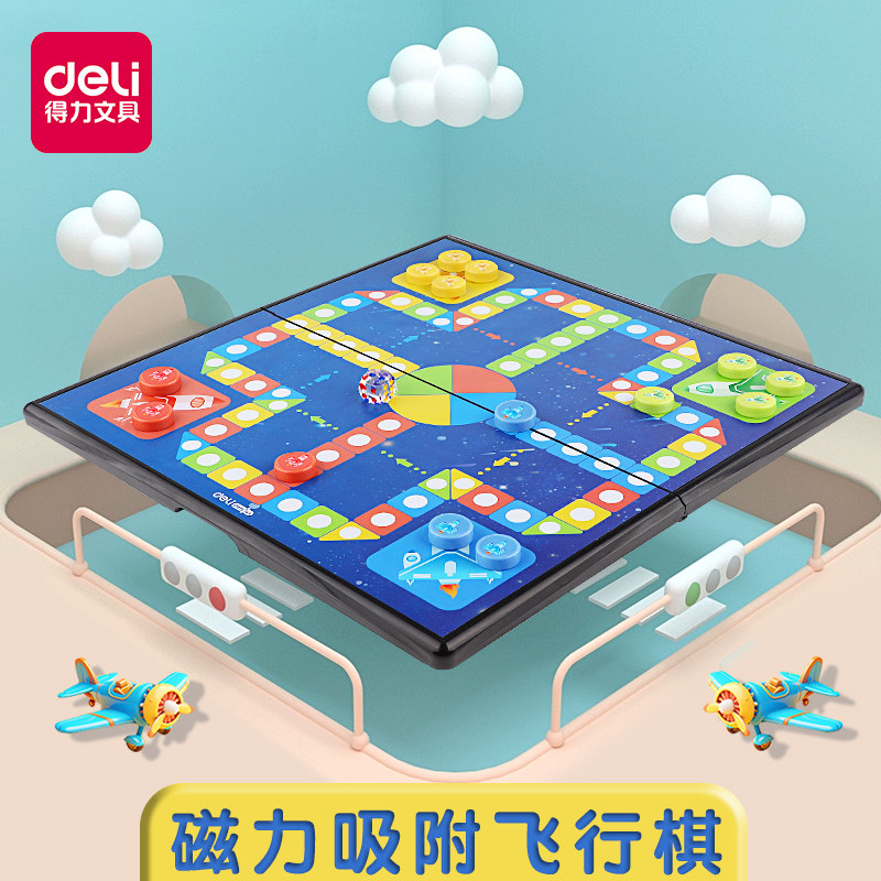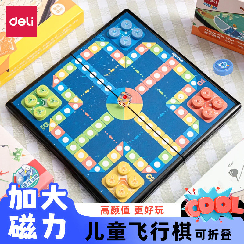 得力飞行棋带磁性儿童益智磁吸折叠棋盘大号五子棋子学生桌游玩具