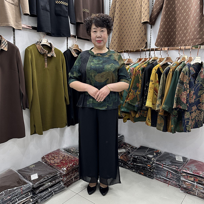 为您提供商品套装 民族风两件套女小个子40岁50拼接真丝t恤旗袍式 中年妈妈夏装的详细介绍,