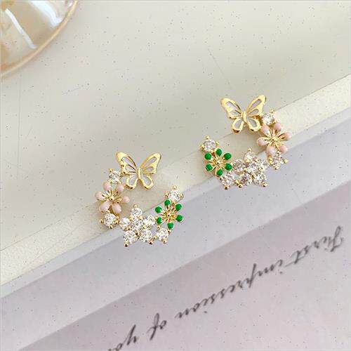 earrings zirconia diamond leave butterfly flowers match Full由