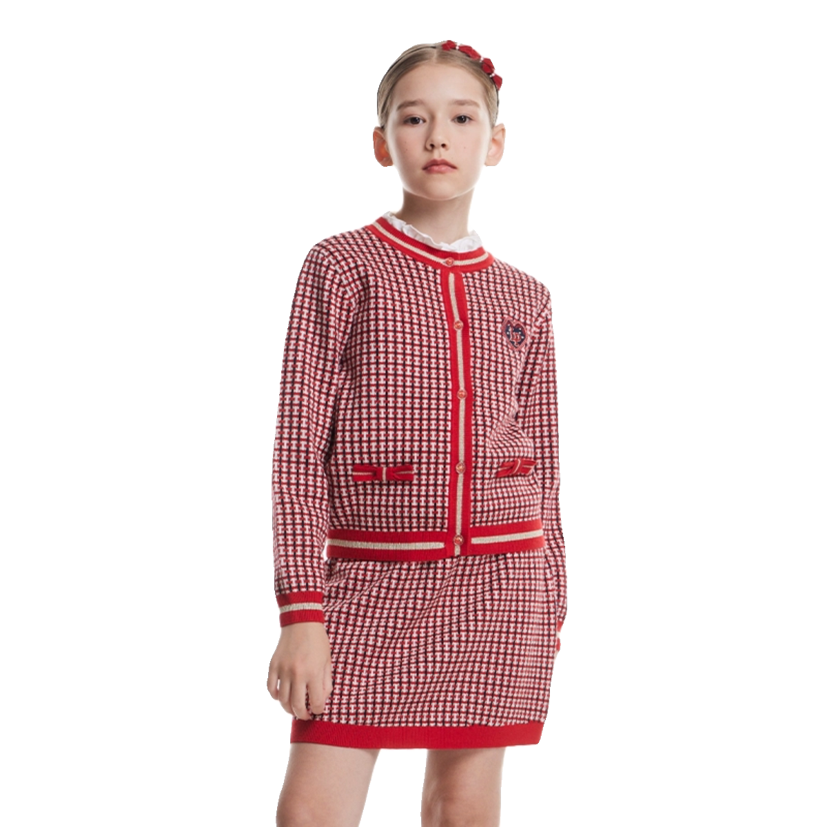 POLOWALK童装 针织衫 儿童半裙秋冬装 红色儿童裙子 女童两件套装