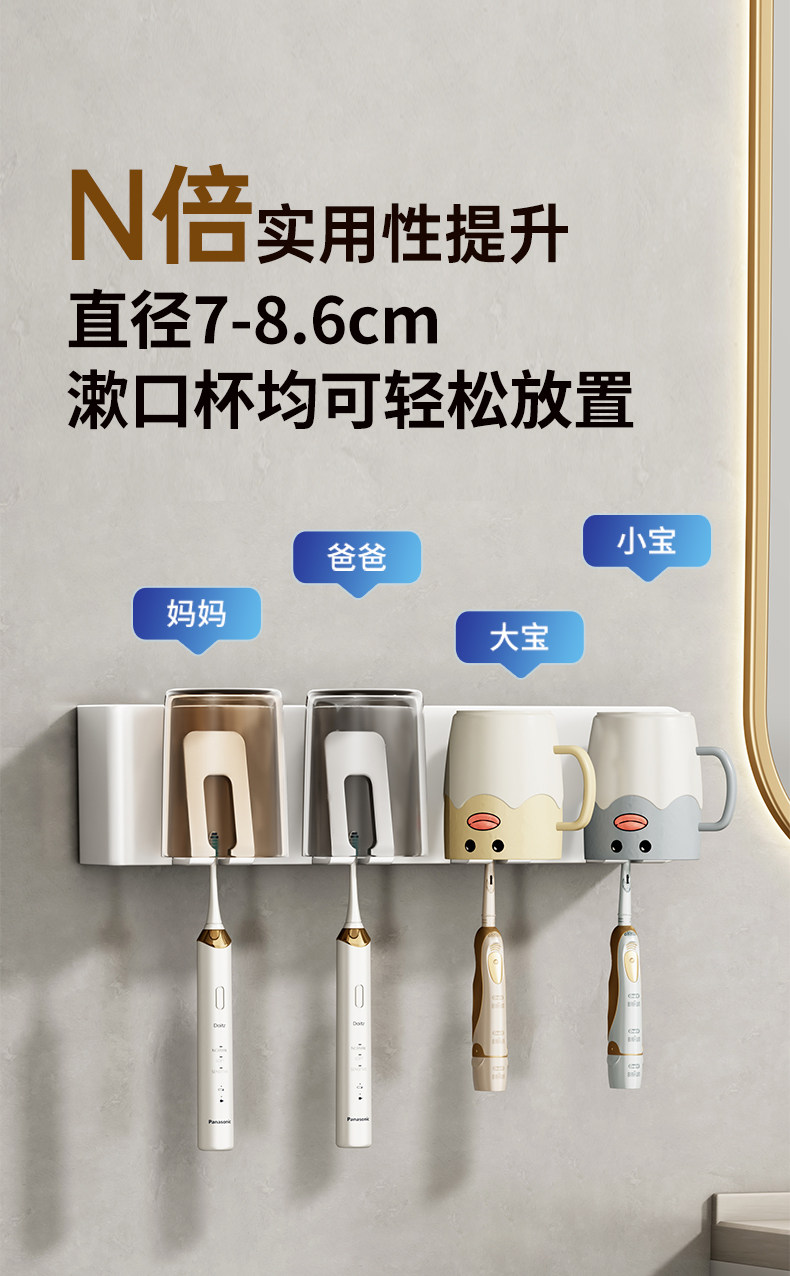 免打孔卫生间牙具座牙膏收纳浴室 牙刷牙杯壁挂置物架电动牙刷套装