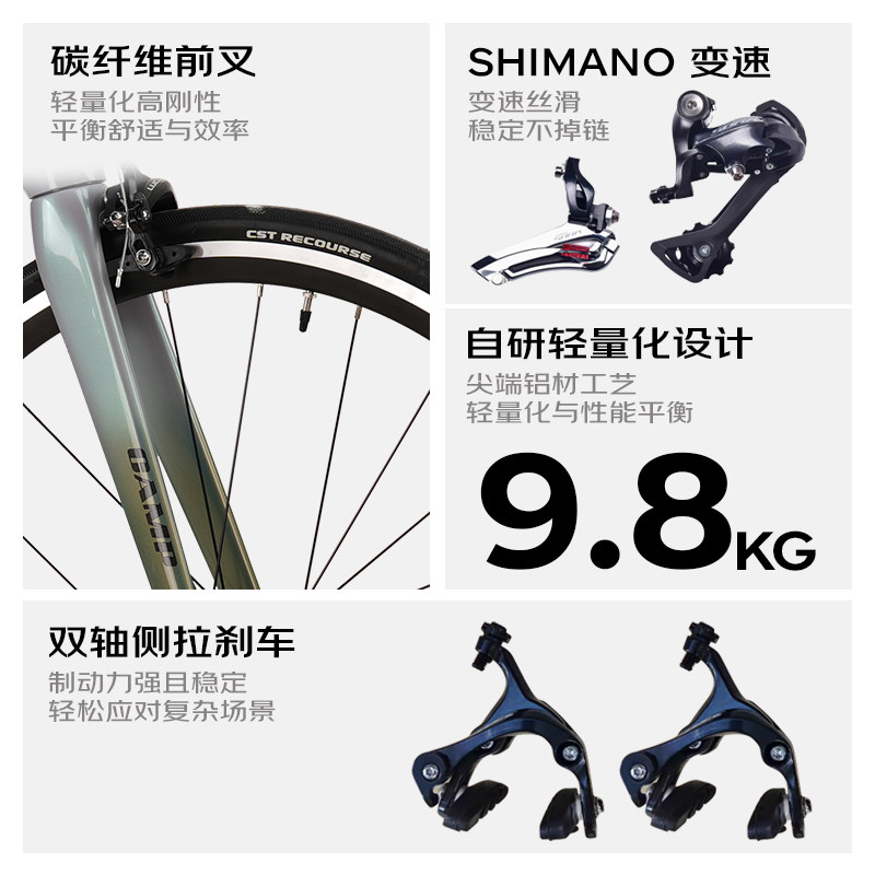 为您提供商品26新款 公路车碳纤维前叉18速顺泰变把圈刹自行车 RADON CAMP坎普的详细介绍,