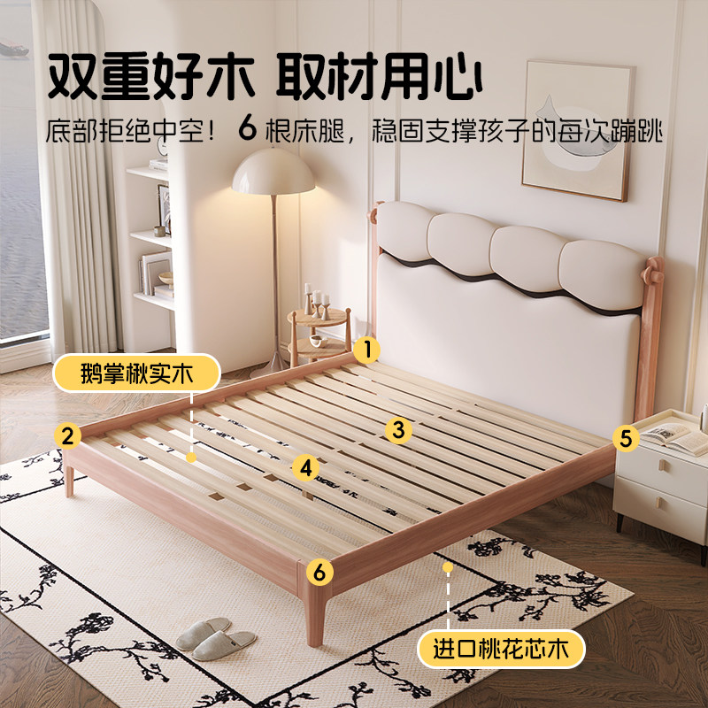 慕思官方旗舰店天然桃花芯实木软包儿童床现代简约牛皮男女孩卧室由