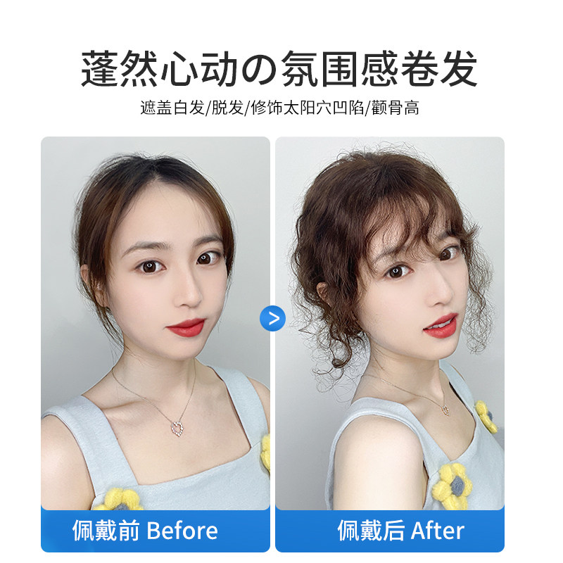 瑞家递针假发片女头顶增发量蓬松真发自然遮头顶白发羊毛卷卷发片
