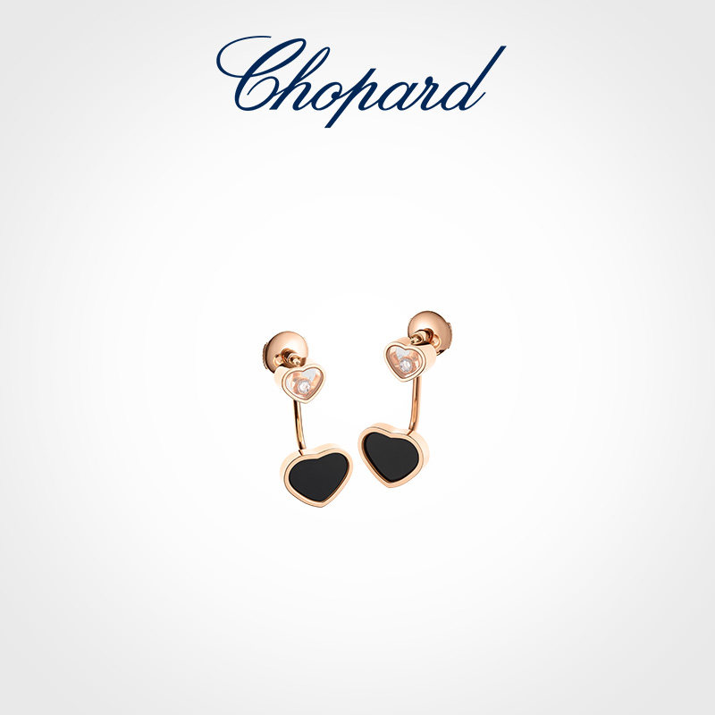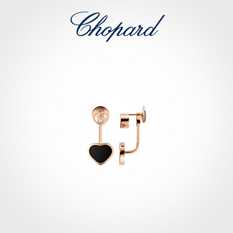 Chopard萧邦18K玫瑰金黑色缟玛瑙爱心快乐钻石耳钉生日礼物由
