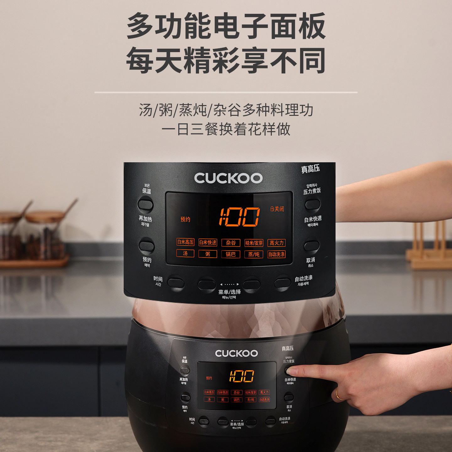 为您提供商品CUCKOO福库电饭煲家用多功能蒸炖煮饭麦饭石型内胆高压预约电饭锅的详细介绍,