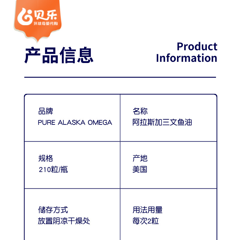 为您提供商品Omega 3阿拉斯加纯净野生深海三文鱼油胶囊210粒 Alaska 美国Pure的详细介绍,