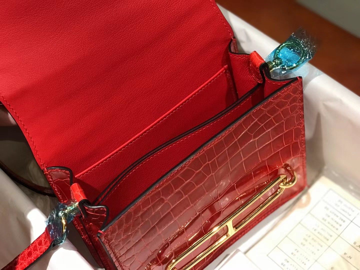 法拉利红 高光鳄鱼皮肚皮猪鼻子女士单肩斜挎迷你19小包2022新款