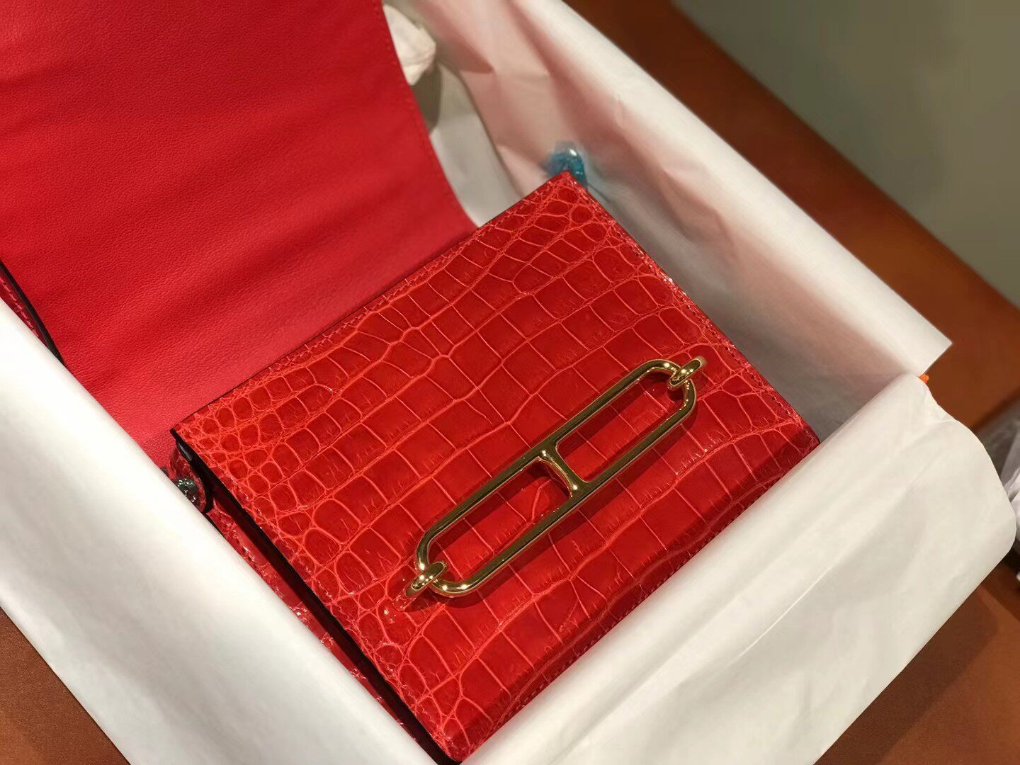 法拉利红 高光鳄鱼皮肚皮猪鼻子女士单肩斜挎迷你19小包2022新款由
