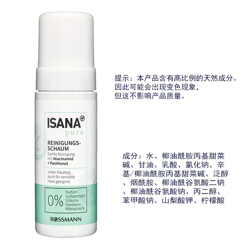 德国进口ISANA无添加0%pure氨基酸洗面奶洁面泡沫慕斯敏感肌150ml