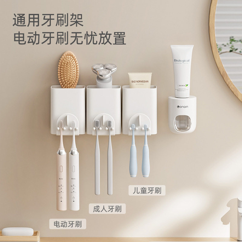 免打孔卫生间牙具座牙膏收纳浴室 牙刷牙杯壁挂置物架电动牙刷套装