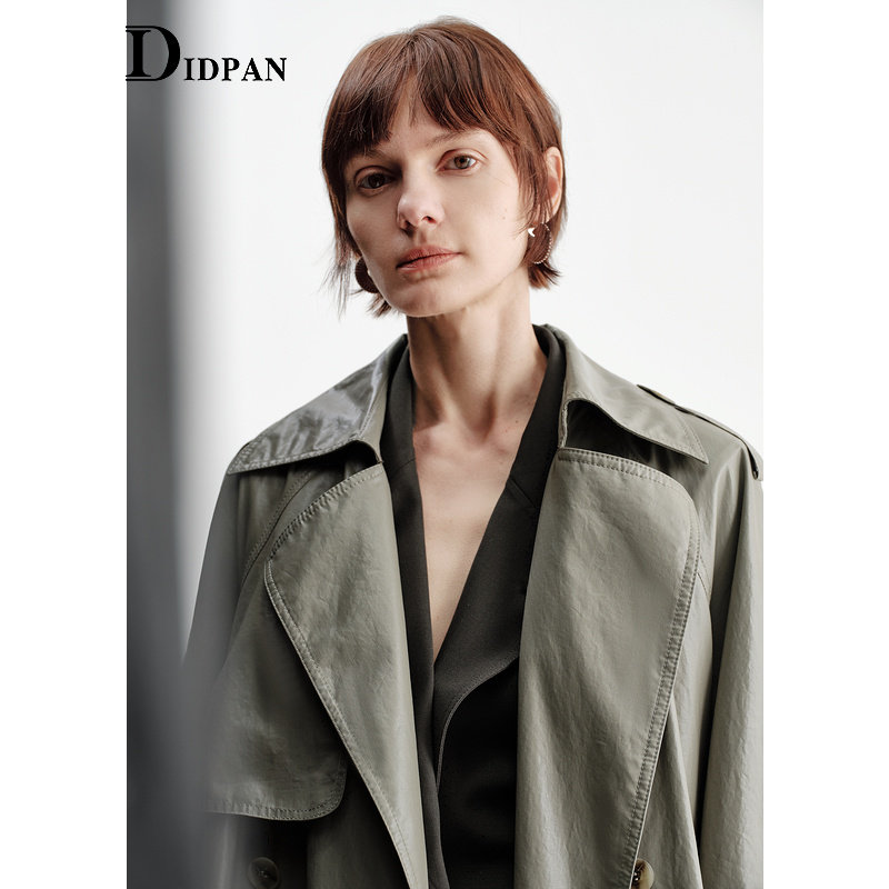 时尚 气质通勤干练垂感外套女 新款 IDPAN双排扣大翻领廓形风衣冬季由