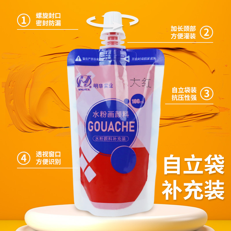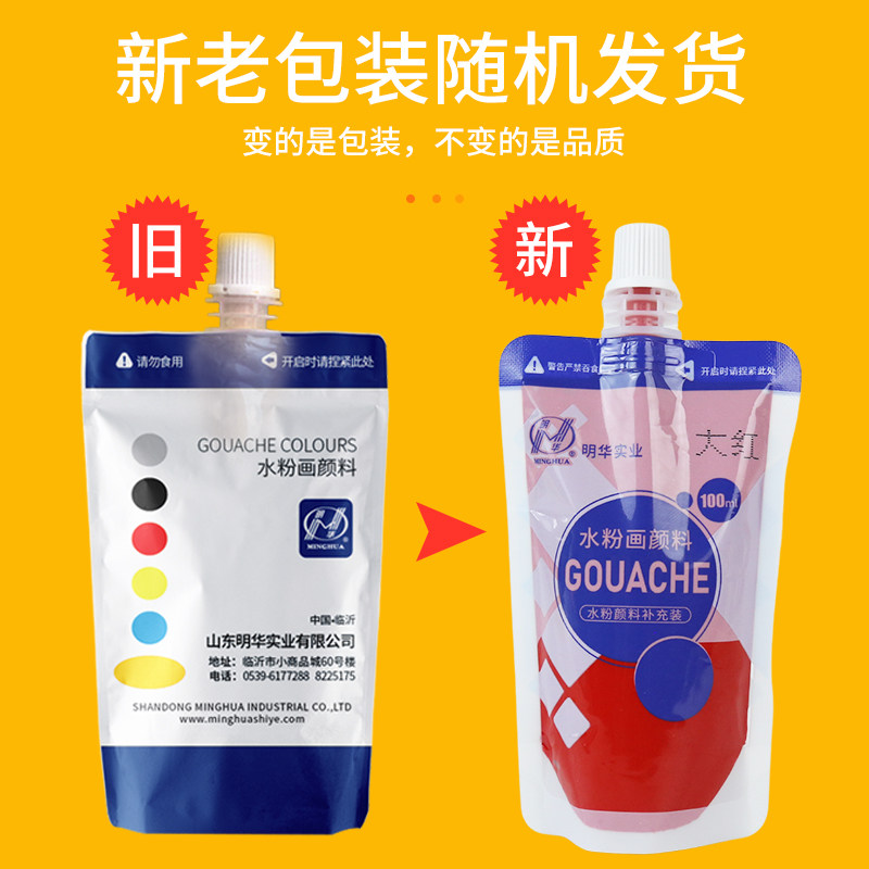 广告画颜料 明华100ml水粉颜料补充包美术绘画涂鸦可水洗补充袋装