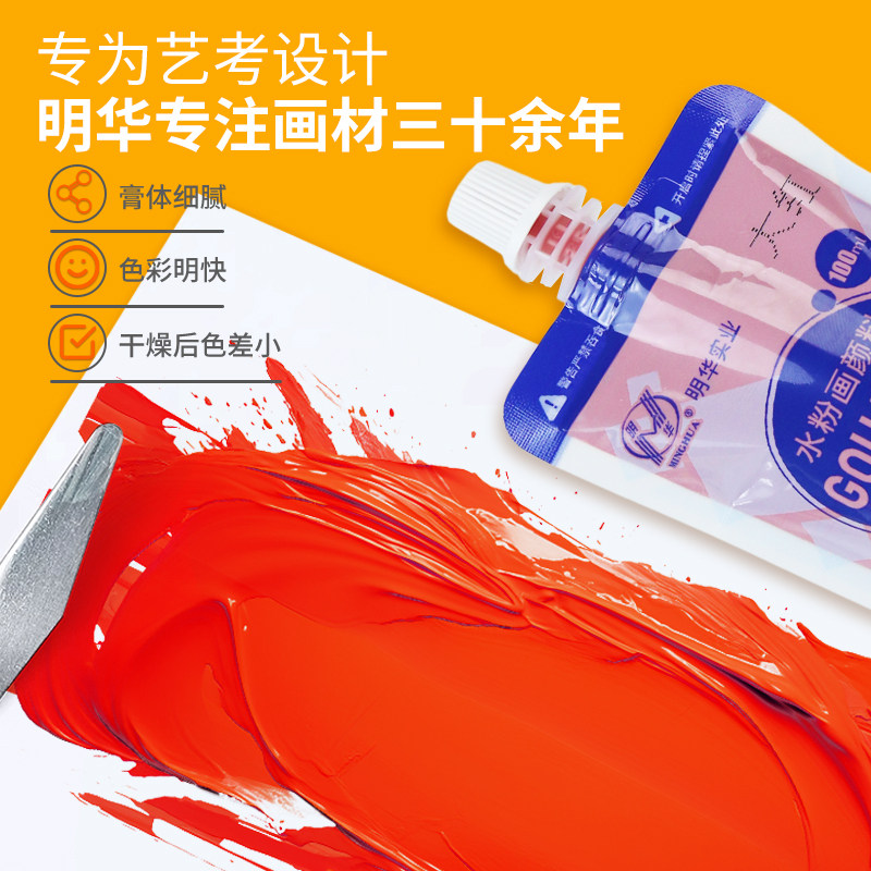 为您提供商品广告画颜料 明华100ml水粉颜料补充包美术绘画涂鸦可水洗补充袋装的详细介绍,