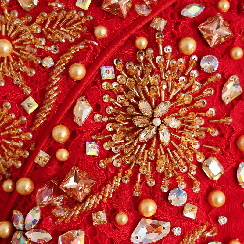 为您提供商品红鸾羽衣 CASTLE私人量身定制红色结婚旗袍水钻婚礼敬酒旗袍 ROSE的详细介绍,