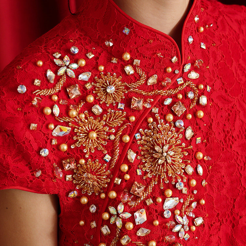 红鸾羽衣 CASTLE私人量身定制红色结婚旗袍水钻婚礼敬酒旗袍 ROSE